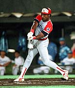 近鉄がようやく反撃のチャンスをつかんだのは6回。安打と四球で無死満塁、迎えるバッターは主砲ブライアント。前の打席でも本塁打を打っているので、大いに期待したいところですが、ブライアントの打撃は当たれば大きいが一面猛烈に粗いところがあり、この年49本で本塁打王を獲得する一方で、三振も従来の記録である158三振を大きく塗り替える187三振を記録しています。そのスイングはたしかに猛烈で、昔「巨人の星」に出ていた中日のオズマを思い起こさせるものがあります。しかしオズマとは違い「当たらない事」も多く、近鉄ファンはブライアントのバットに郭泰源の投球が「衝突」してくれることをひたすら願いました。