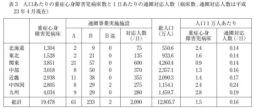 こうなっていますからNICUだけではなく他の疾患の治療後も含む広い調査であった事が確認できます。実数として確認できたのが244人ですが、回答が行なわれなかった施設にも同じように長期入院患者がいるとして391人。さらにかなり無理して在宅治療を行っているものを勘案してもどうでしょうか、全国で1000人程度のキャパシティを充実させればかなり解消する気がします。このレポートはさらに現在の重症心身障害者施設の現状も調査されています。